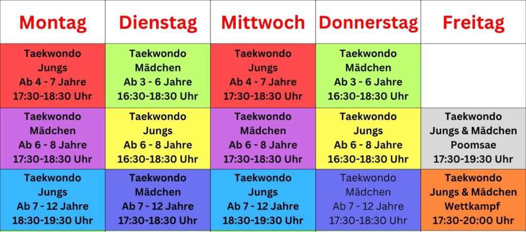 Taekwondo ist für Kinder, Jugendliche und Erwachsene gleichermaßen geeignet. Es vermittelt Werte, die weit über das Training hinausgehen: Höflichkeit, Durchhaltevermögen und gegenseitigen Respekt. Fortschritte zeigen sich nicht nur in neuen Techniken oder Gürtelgraden, sondern auch im Alltag – in einer aufrechten Haltung, größerer Selbstsicherheit und innerer Ruhe.